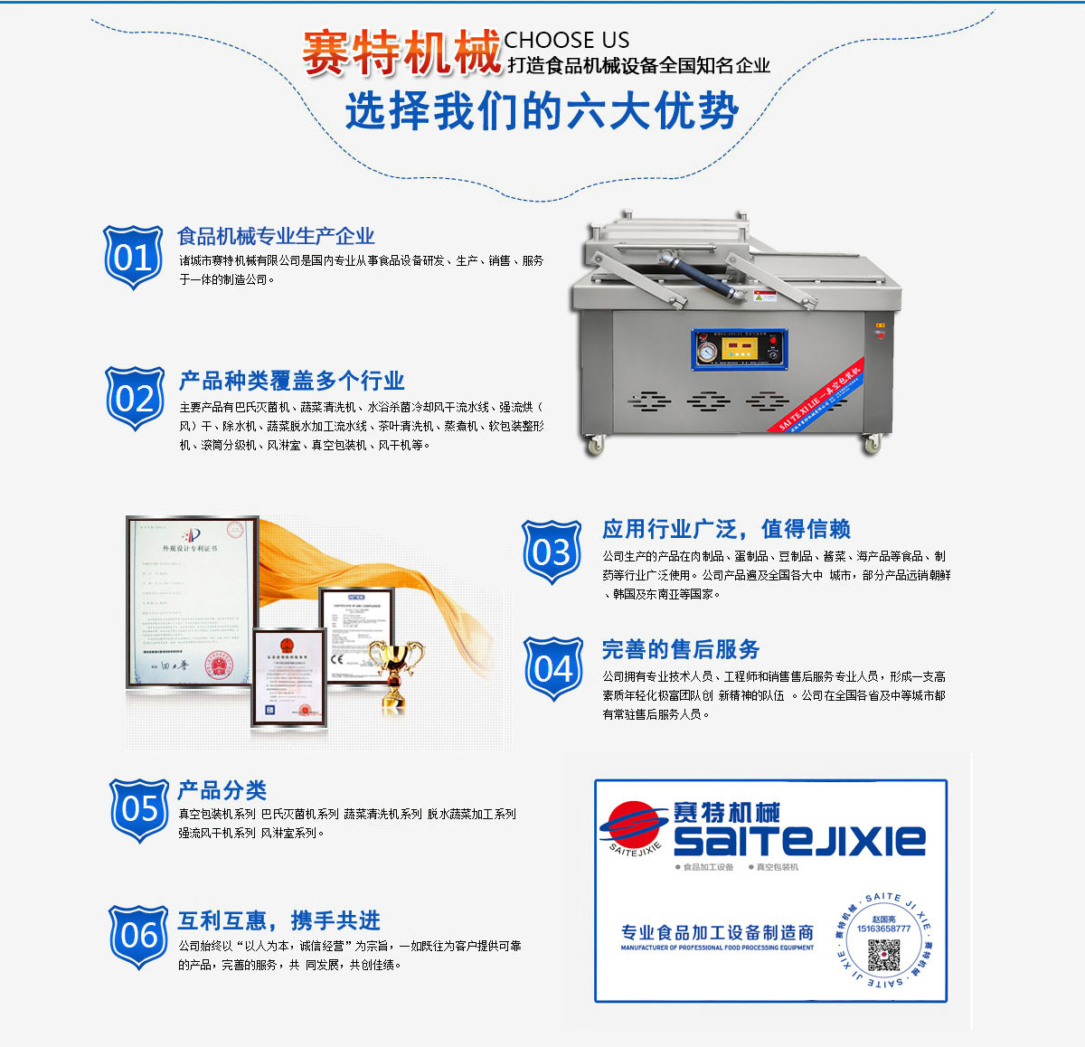 諸城市賽特機(jī)械有限公司是國(guó)內(nèi)專(zhuān)業(yè)從事食品設(shè)備研發(fā)、生產(chǎn)、銷(xiāo)售、服務(wù)于一體的制造公司, 主要產(chǎn)品有巴氏滅菌機(jī)、蔬菜清洗機(jī)、水浴殺菌冷卻風(fēng)干流水線(xiàn)、強(qiáng)流烘(風(fēng))干、除水機(jī)、蔬菜脫水加工流水線(xiàn)、茶葉清洗機(jī)、蒸煮機(jī)、軟包裝整形機(jī)、滾筒分級(jí)機(jī)、風(fēng)淋室、真空包裝機(jī)、風(fēng)干機(jī)等已在 肉制品、蛋制品、豆制品、醬菜、海產(chǎn)品等食品、制藥等行業(yè)廣泛使用。公司產(chǎn)品遍及全國(guó)各大中 城市,部分產(chǎn)品遠(yuǎn)銷(xiāo)朝鮮、韓國(guó)及東南亞等國(guó)家。         公司擁有技術(shù)人員、工程師和銷(xiāo)售售后服務(wù)專(zhuān)業(yè)人員,形成一支高...